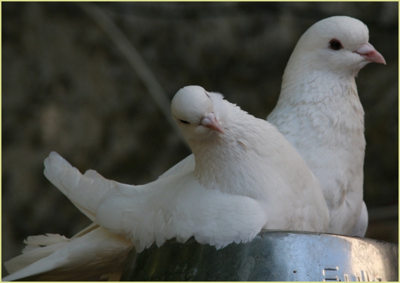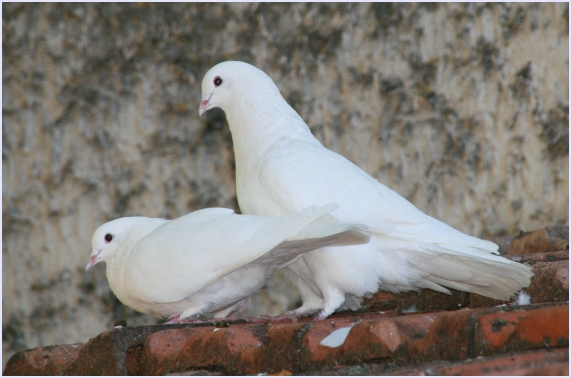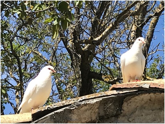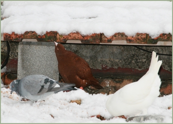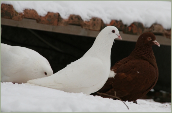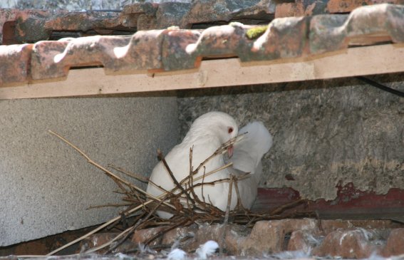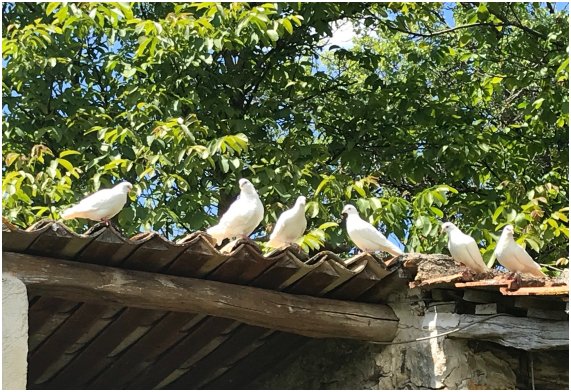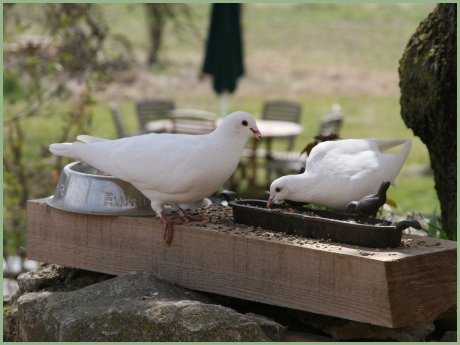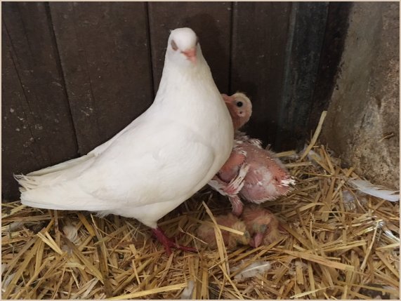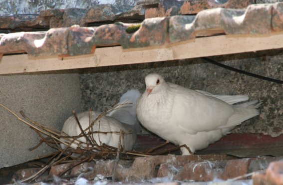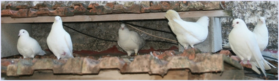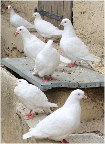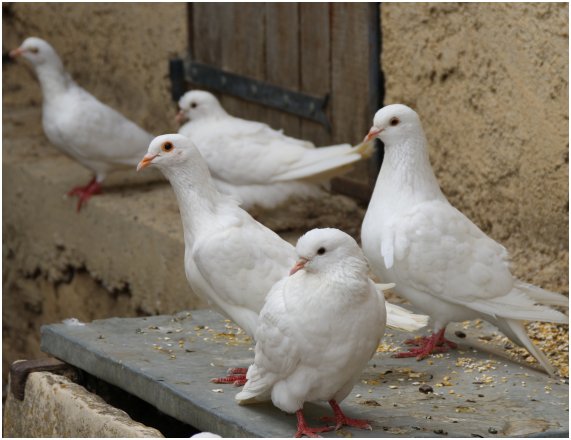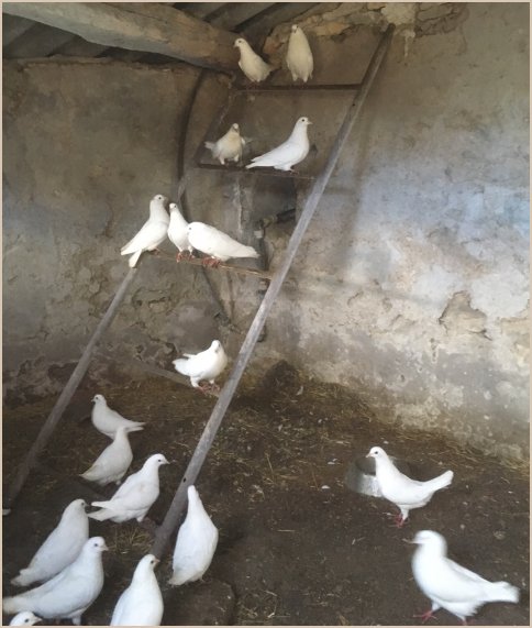 Notre grande famille de pigeons blancs tous colocataires de nos poules...