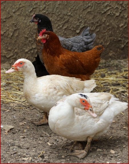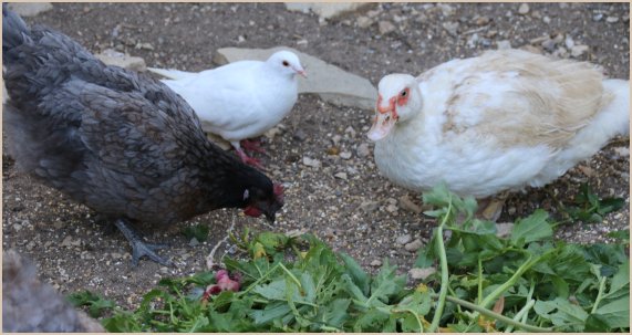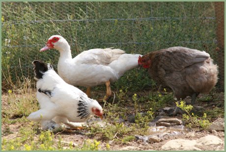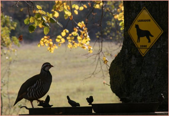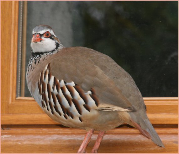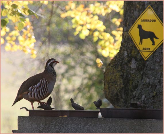 un couple de perdreaux vient partager le repas de la basse-cour...