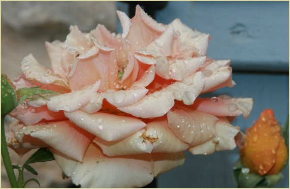 Le pied " Pierre de Ronsard " exposé sud-est beaucoup plus coloré