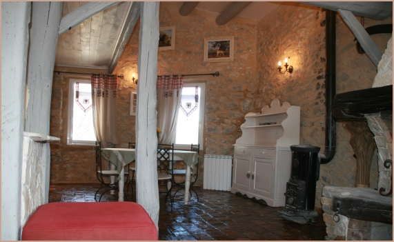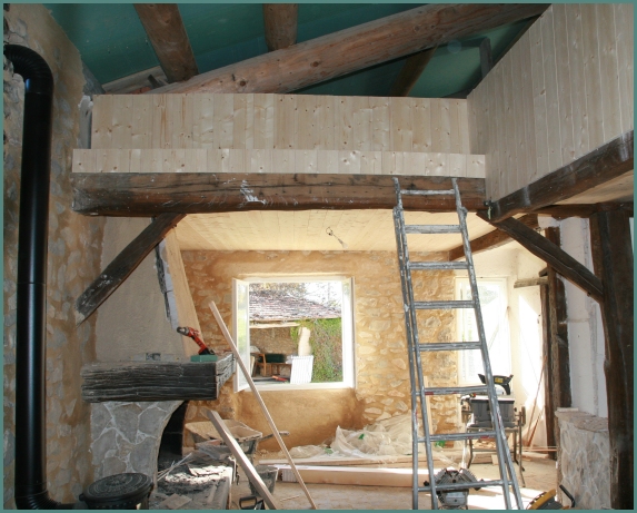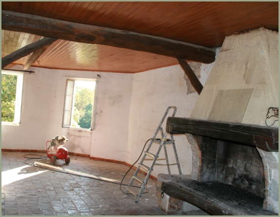 l'entrée, le salon/salle à manger encore en cours d'aménagement...