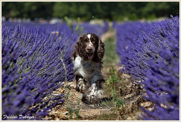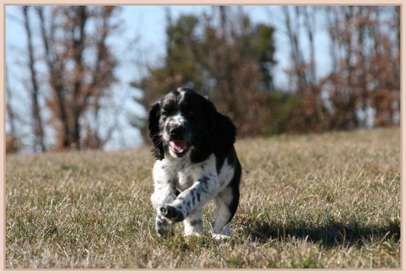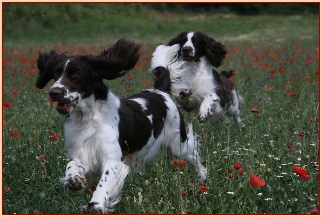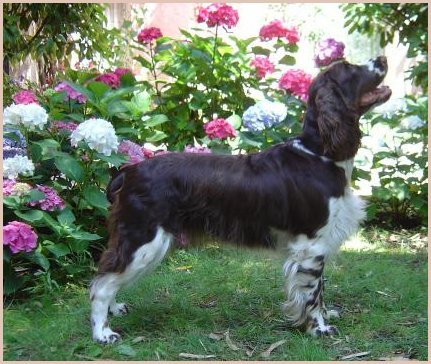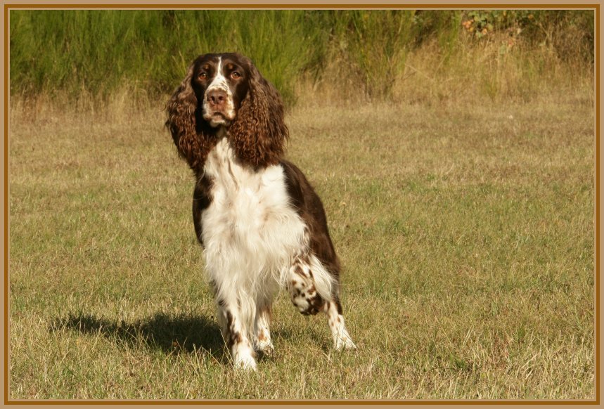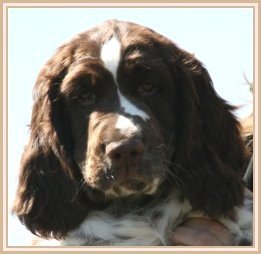 Connaissiez-vous les English Springers Spaniel ? Vous les découvrez pour leurs défauts qui au fond ne reflètent que leur joie de vivre... Voilà pourquoi Upland a ouvert la porte de notre coeur qui ne se referma jamais ! Depuis mi-janvier 2004, une petite nouvelle "chipie" est venue rejoindre les Labradors du Clos de Nissa-Bella... Nous nous intéressions depuis quelques années à ce compagnon de chasse aussi attachant que nos labradors. Petite Springer affectueuse et "pleine de vie", elle s'appelle :